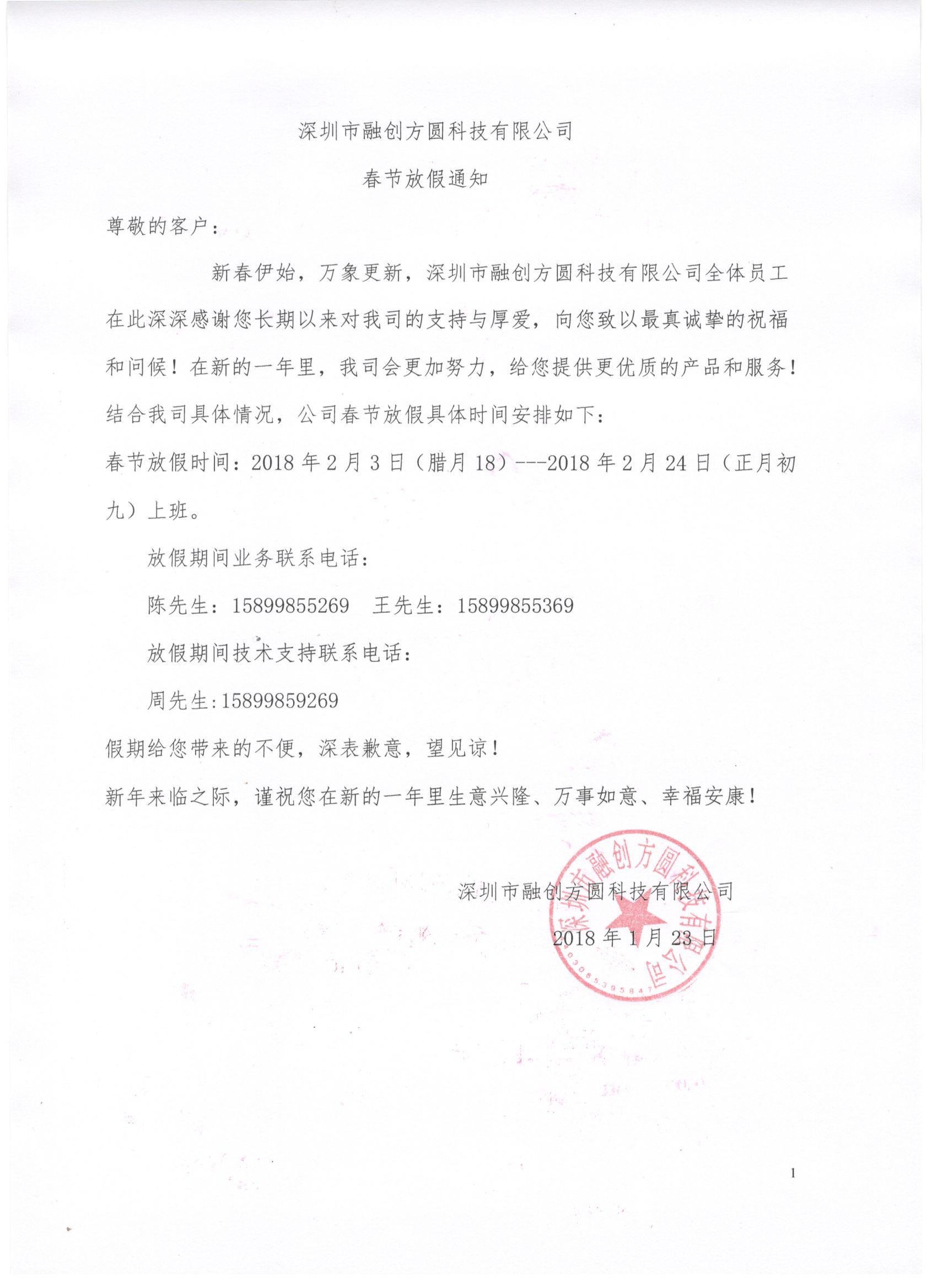 2018年春節(jié)放假通知!